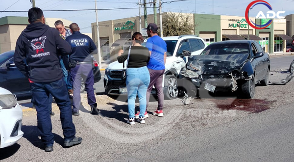 Cd. Delicias, Chih.- Un fuerte accidente vial se registró sobre la Calzada del Charro, a la altura de la avenida Sexta Oriente, frente a la Plaza Comercial Delfines, dejando como saldo a una persona con golpes y daños materiales que superan los 200 mil pesos.