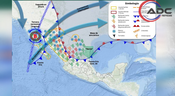 Este fenómeno, derivado del ingreso del frente frío 31 y la interacción de una masa de aire ártico asociada con corrientes en chorro subtropical y polar, así como una vaguada en altura, se presentará principalmente sobre el norte del estado durante el fin de semana.