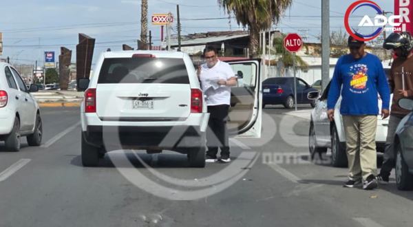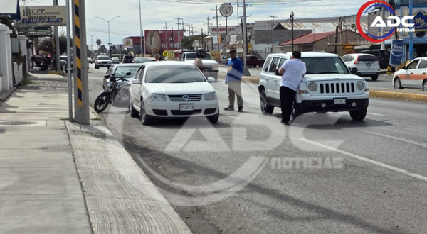 Cd. Delicias, Chih.- La tarde de este viernes se registró un accidente vial entre una motocicleta y un vehículo particular sobre la avenida Río San Pedro Sur, a la altura de la glorieta Gómez Morín, lo que generó la movilización de elementos de Vialidad y cuerpos de emergencia.