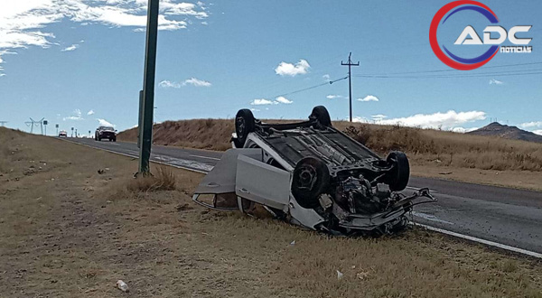 Chihuahua, Chih.-Una volcadura se registró a la altura del kilómetro 25 de la carretera Chihuahua–Cuauhtémoc, luego de que el conductor de un automóvil Chevrolet Aveo, color blanco, perdiera el control del volante mientras circulaba por la vía.
