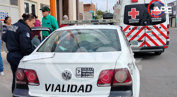 Cd. Delicias, Chih.- Un accidente vial se registró este jueves en el cruce de la avenida Río Florido con avenida Octava y calle Quinta Poniente, donde se vieron involucrados un automóvil Volkswagen Jetta color blanco y una motocicleta.