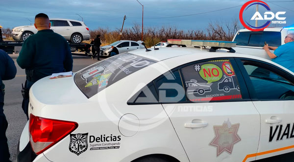 Cd. Delicias, Chih.- Un percance automovilístico se registró en la carretera Delicias–Orranteño, a la altura del entronque con la colonia La Quemada, luego de que una camioneta Buick de color blanco colisionara por alcance contra un automóvil Chevrolet gris, cuando ambos circulaban en el mismo sentido.