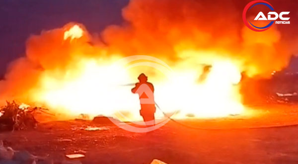Debido a la magnitud del siniestro, elementos del Departamento de Bomberos acudieron al lugar a bordo de la máquina número 20, comenzando de inmediato las labores para controlar y extinguir las llamas. Los trabajos se enfocaron en dos zonas principales del predio, donde el fuego alcanzó mayor intensidad por la presencia de llantas.