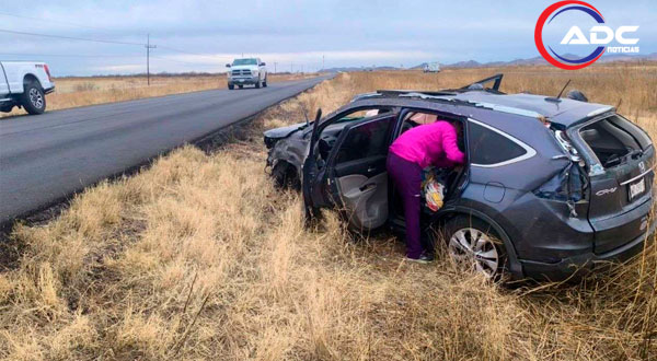 Cd. Delicias, Chih.- Un accidente vial se registró en el kilómetro 140 de la carretera con rumbo a Juárez, donde una camioneta Honda CR-V terminó volcada luego de que la conductora perdiera el control y se saliera de la cinta asfáltica.