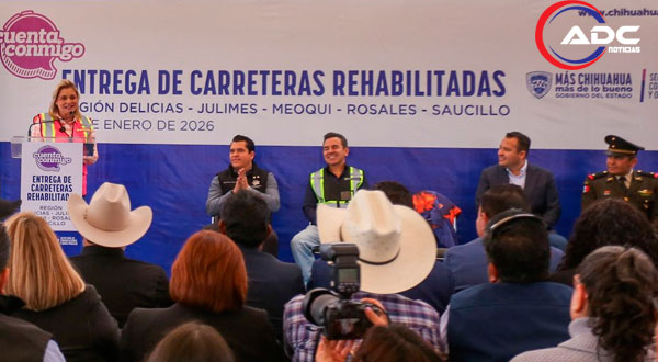 En el evento realizado en la Carrera Delicias-Presa Las Vírgenes, el presidente municipal Jesús Valenciano García reconoció el respaldo permanente de la mandataria estatal, destacando que estas obras representan un beneficio directo para la movilidad, la seguridad y el desarrollo económico de la región, al fortalecer las vialidades que conectan a Delicias con comunidades estratégicas como la presa Las Vírgenes, Saucillo, Naica y Rosales, rutas fundamentales para la actividad productiva y comercial.