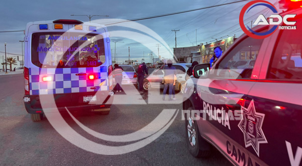 Camargo, Chih.-Un accidente vial se registró la tarde de este sábado en el cruce de la calle Pablo Ginther y Doblado, cuando una mujer conductora intentó dar vuelta a la izquierda desde el carril derecho. Ambos vehículos circulaban de oeste a este al momento del percance.