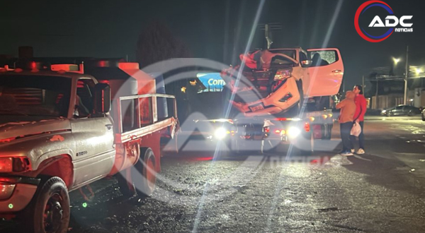 A consecuencia del fuerte golpe, la camioneta RAM fue proyectada hacia adelante, terminando su trayectoria estrellada contra un poste de madera propiedad de Teléfonos de México.