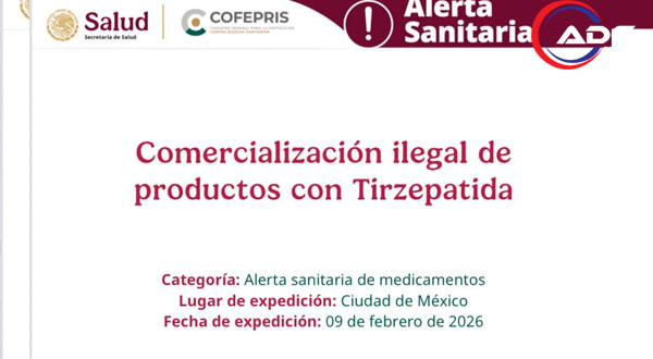 México.- La Comisión Federal para la Protección contra Riesgos Sanitarios (Cofepris) emitió una alerta por la comercialización ilegal de productos que contienen Tirzepatida, sustancia empleada en el tratamiento de la diabetes tipo 2 y el control crónico del peso.