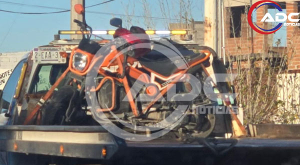 En el accidente se vieron involucrados una motocicleta Honda de color naranja, que chocó con su parte frontal contra el costado izquierdo de la defensa trasera de una camioneta Nissan NP300 color blanco.