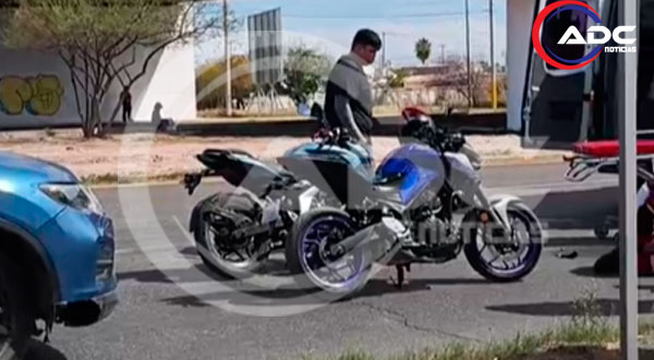 Cd. Delicias, Chih.- La tarde de este martes 3 de marzo se registró un accidente vial sobre la carretera Federal número 45, a la altura del Parque Fundadores, donde participaron una motocicleta azul y una camioneta blanca de la empresa ANSAMEX.