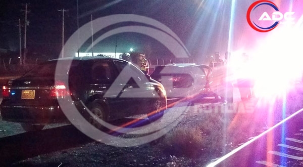 Cd. Delicias, Chih.- La noche de este martes se registró un accidente vehicular en el cruce de la carretera federal número 45 con la avenida de las Moras, a la altura del entronque hacia la colonia Hidalgo, involucrando a dos vehículos de la marca Chevrolet.