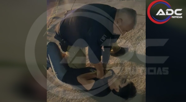 En las imágenes se observa a un oficial cuando procede a someter al joven, presuntamente después de marcarle el alto por una falta al reglamento de tránsito. Durante la intervención, una mujer que lo acompaña afirma que el agente lo habría agredido primero y señala lo que considera un posible abuso de autoridad.
