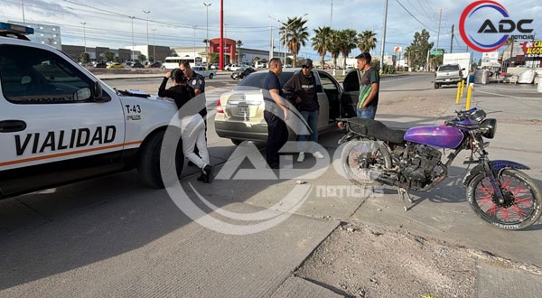 El percance ocurrió cuando un vehículo Nissan Tiida circulaba sobre la avenida Fernando Baeza y, al intentar realizar una vuelta prohibida, invadió la trayectoria de una motocicleta que transitaba con preferencia sobre la Plutarco Elías Calles, provocando el impacto.